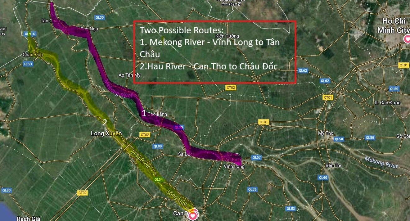 Route 2 would be on the Hau River, and would follow the same pattern as Route 1.